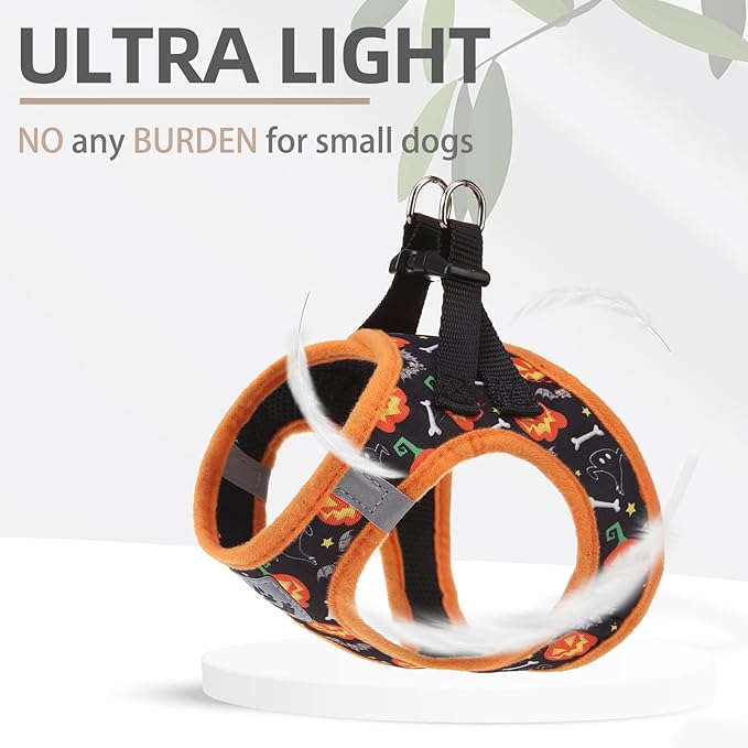 PUPTECK Adjustable Dog Harness Collar and Leash Set Step in No Pull Pet Harness for Small Medium Dogs Puppy and Cats Outdoor Walking Running, Soft Mesh Padded Reflective Vest Harnesses, Halloween, S