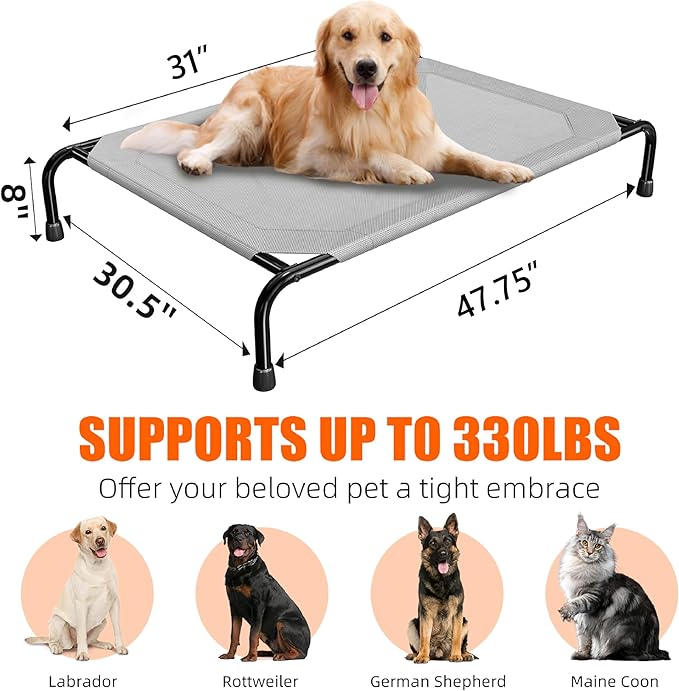 - 【USE INDOORS AND OUTDOORS】8-inch raised breathable mesh pet bed withstands the elements and can be used indoors and outdoors. Keep your dog dry and comfortable in the backyard, on the patio or porch, by the pool or while camping.