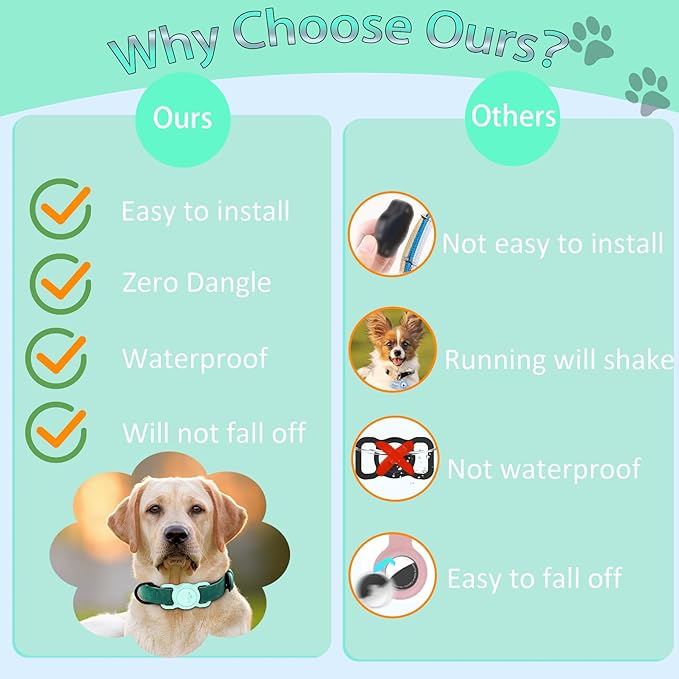 - 【Waterproof Design】The 360°coverage design can completely wrap around the airtag, with strong waterproof function, preventing damage to the airtag when pets splash water, and will not block the airtag signal. This can provide maximum protection for dogs who like to swim.