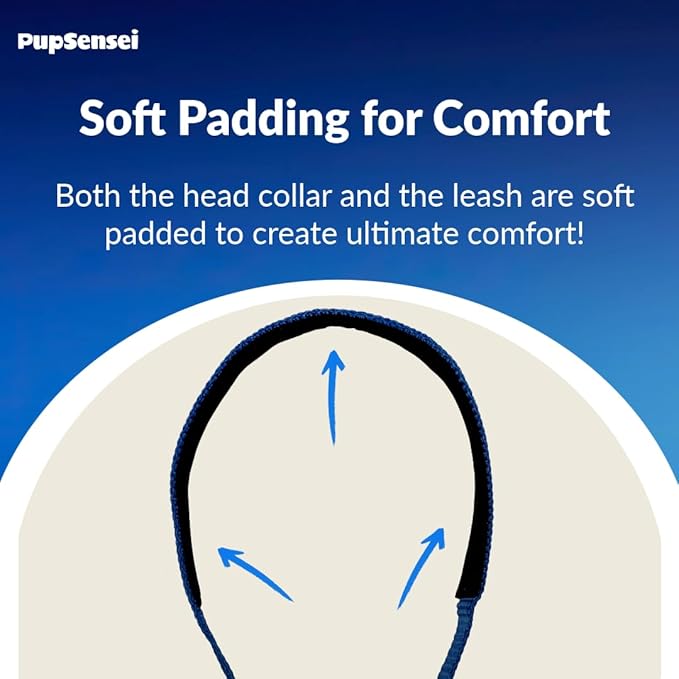 Headcollar for Dogs, Extra Soft Padded, Reflective, No Pull Dog Collar, Gentle Leader for Dogs with Durable Nylon Leash, Padded Handle - Navy Blue (X-Large)