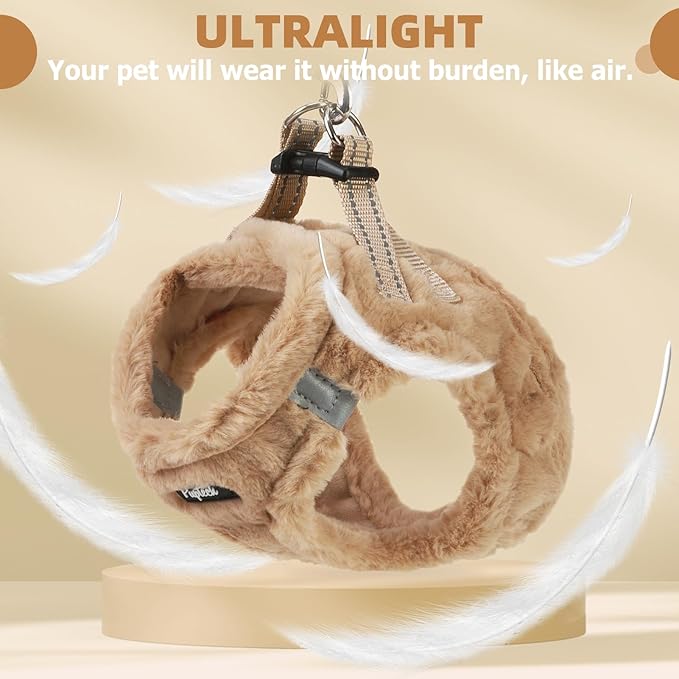 - WARM: The harness is made of thicker plush, which is not only very soft, but also keeps the dog warm to a certain extent. It is suitable for walking and playing outdoors in autumn and winter.