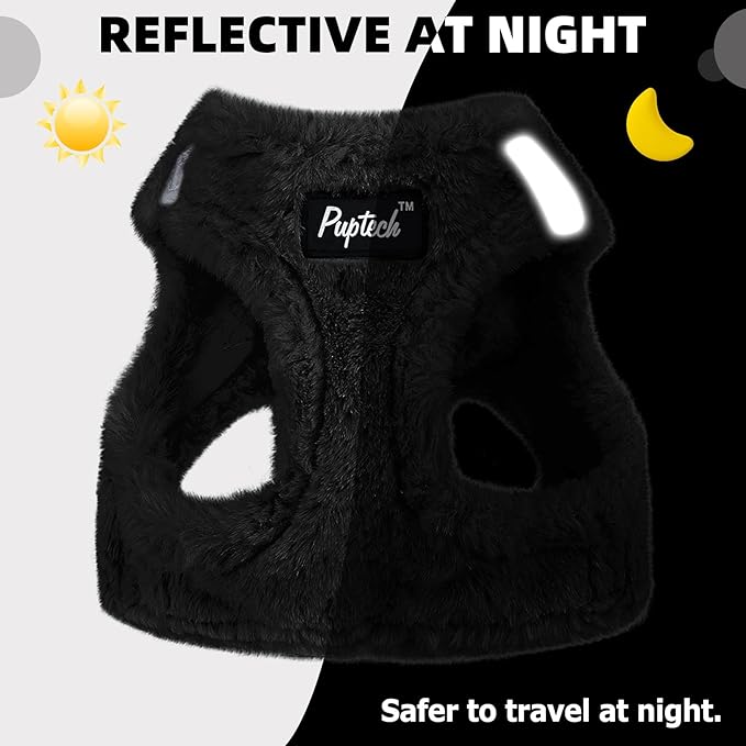 PUPTECK Adjustable Dog Harness Collar and Leash Set Step in No Pull Pet Harness for Small Medium Dogs Puppy and Cats Outdoor Walking Running, Soft Mesh Padded Reflective Vest Harnesses, Black M