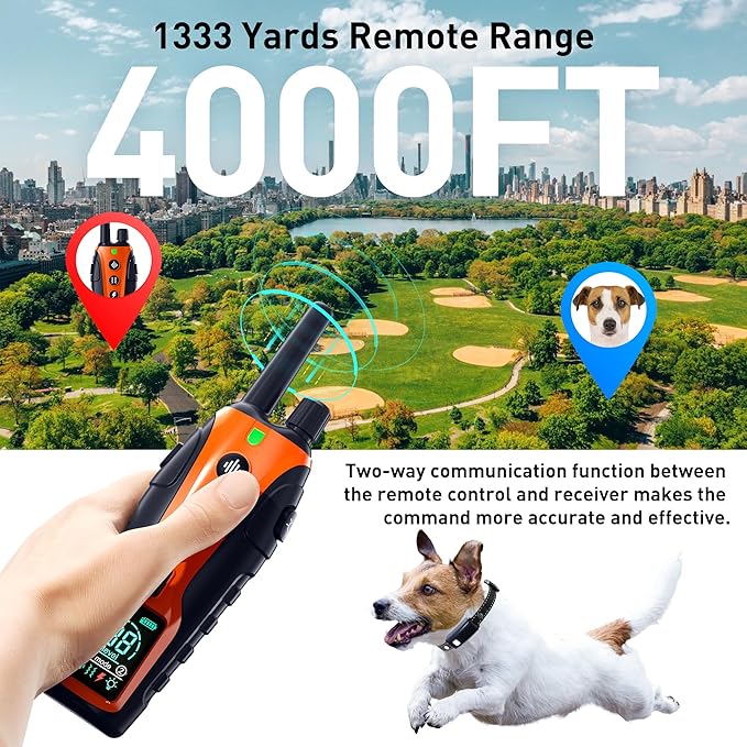 - 【Dogs Training Collar with Remote 4000FT】Twice the control range of normal products,the two-way communication function between the remote control and receiver makes the command more accurate and effective, even if it is separated by two walls, it will not affect the control effect,no longer worry about the dog running away, you can recall your dog with one click