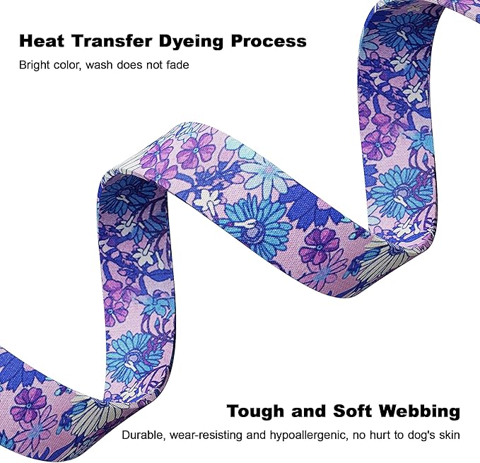 - 【Newest Pattern Design!】 Floral dog collar is designed by a French senior designer based on the popular elements of the season,and uses the newest thermal sublimation transfer process to specifically solve the problem of washing and sun fading.The clear and vivid flower pattern on the collar instantly make the dog elegant,suitable for all female,girls,male and boys dogs.Fashion cutting edge design of the flower dog collar is very beautiful and cute,make your dog stand out from other pets.
