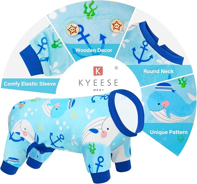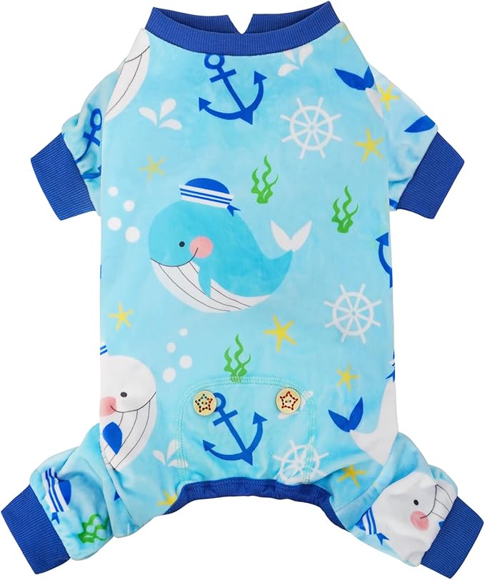KYEESE Dog Pajamas Velvet Dog Pajamas Small Sized Dogs Soft Dogs Clothes Pet Coat Stretchy Doggie Pjs Pet Costume with Whale Pattern Comfy Doggie Jammies Onesie, Medium