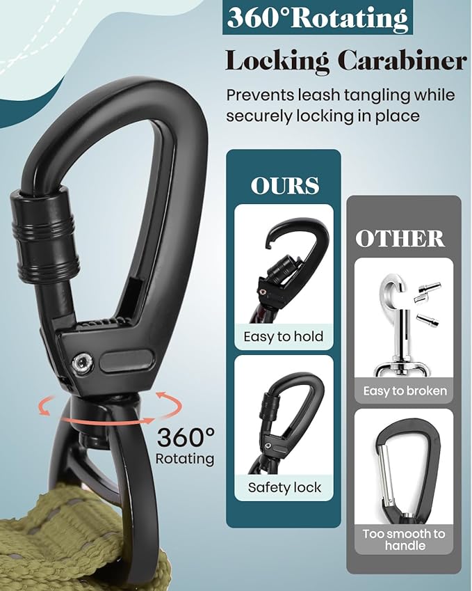- 👋 𝐃𝐮𝐚𝐥 𝐇𝐚𝐧𝐝𝐥𝐞𝐬: Dog leash's two handles provide easy control in different scenarios. Use the traffic handle for emergencies, the walking handle for strolls.