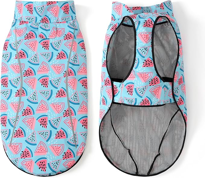 Mile High Life Dog Raincoat, Adjustable Waterproof Reflective Rain Jacket for Small Medium Large Dogs, Lightweight Breathable Pet Rain Coat with Leash Hole(Light Blue Watermelon,L Chest 32-40")