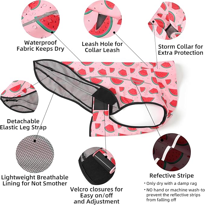 Mile High Life Dog Raincoat, Adjustable Waterproof Reflective Rain Jacket for Small Medium Large Dogs, Lightweight Breathable Pet Rain Coat with Leash Hole(Pink Watermelon,XS Chest 17-23")