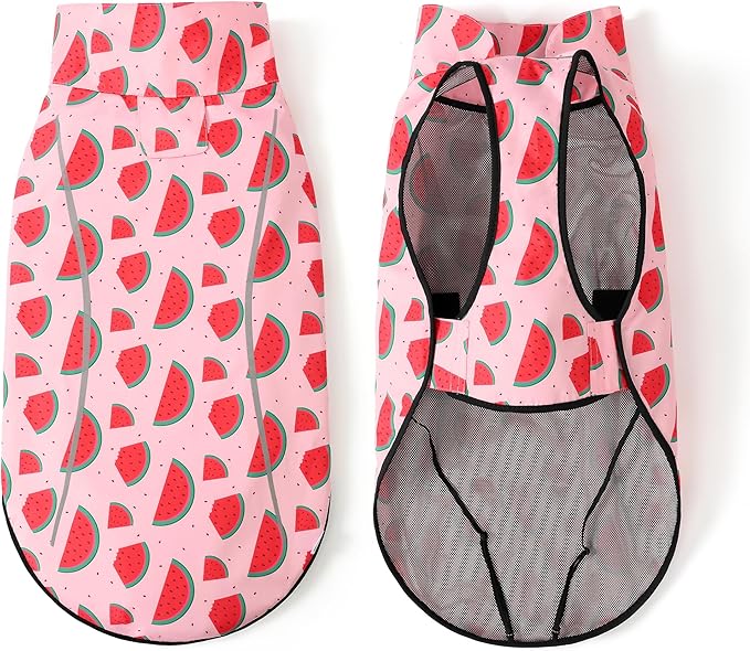 Mile High Life Dog Raincoat, Adjustable Waterproof Reflective Rain Jacket for Small Medium Large Dogs, Lightweight Breathable Pet Rain Coat with Leash Hole(Pink Watermelon,XXS Chest 16-19")