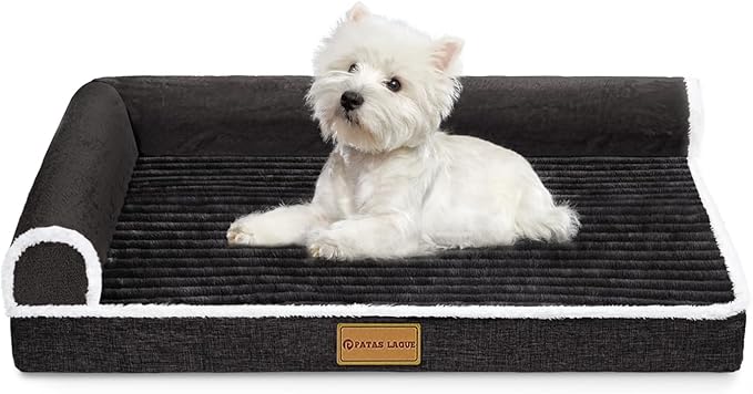 Patas Lague Orthopedic Dog Bed for Medium Dogs 30''X20'', Waterproof Comfortable L Shaped Medium Non-Slip Soft Warm Pet Sofa Sleep Bed mat with Removable Washable Cover, Black