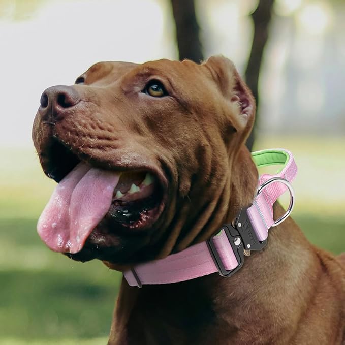 - Heavy Duty Quick Release Dog Collar: Well made and high guality genuine polyester material, the wide dog collar is thick, tough yet comfortable, and the soft padded interior provides a comfortable wearing and avoid your dog from rubbing against the skin, durability to take on all types of adventures and weather. When you receive and feel the collar you will know that it was made with quality and care