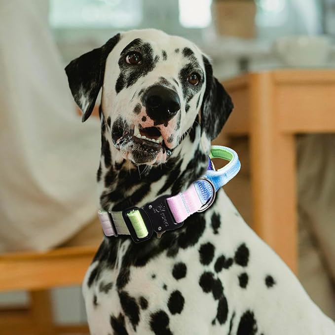 TSPRO Premium Dog Collars Tactical Dog Collar with Handle and Heavy Duty Quick-Release Metal Buckle Durable Thick and Adjustable for Medium to Large Dogs (Gradient Rainbow M)