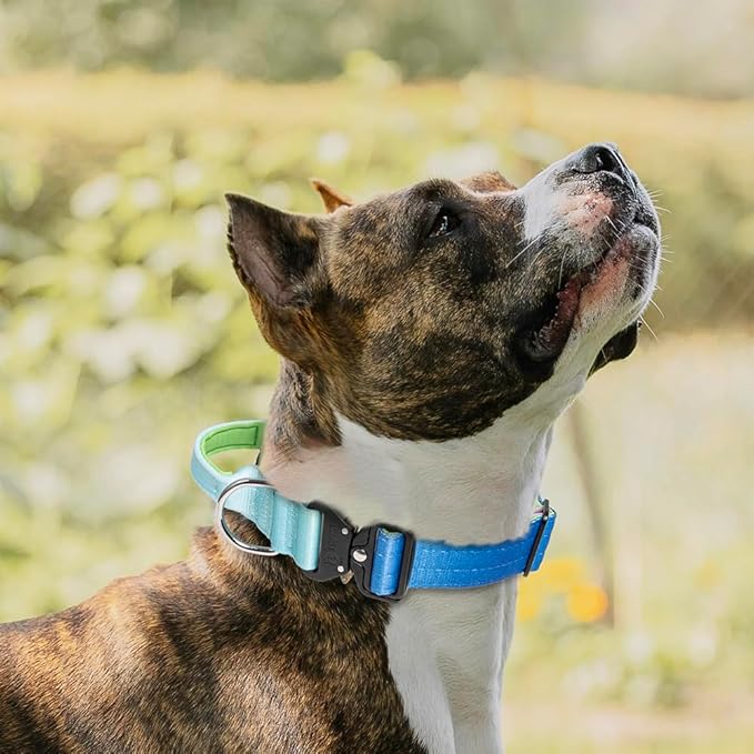 TSPRO Premium Dog Collars Tactical Dog Collar with Handle and Heavy Duty Quick-Release Metal Buckle Durable Thick and Adjustable for Medium to Large Dogs (Gradient Rainbow L)