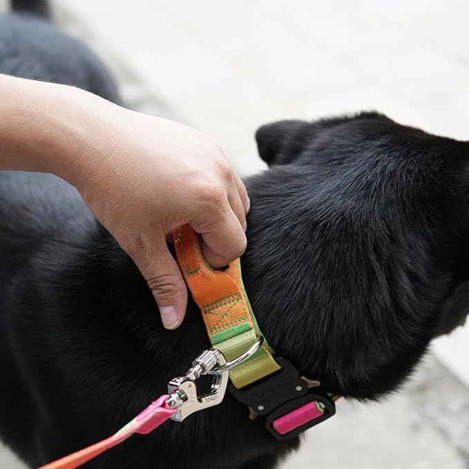 TSPRO Premium Dog Collars Tactical Dog Collar with Handle and Heavy Duty Quick-Release Metal Buckle Durable Thick and Adjustable for Medium to Large Dogs (Vitality Gradient M)