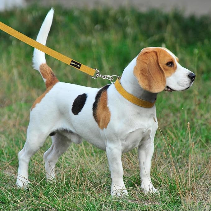 Plutus Pet Cotton Hemp Dog Collar and Leash Set, Adjustable Collar for Small, Medium, and Large Dogs, Heavy Duty and Soft on Skin, Yellow, XL