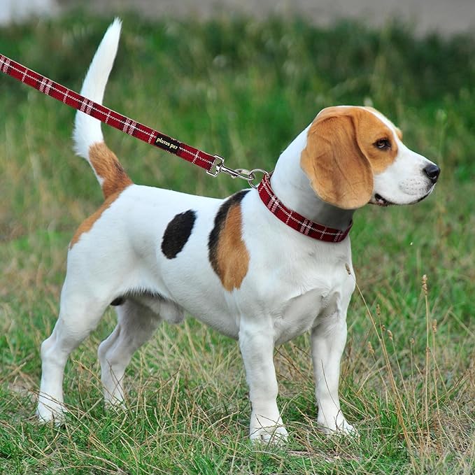 Plutus Pet Cotton Hemp Dog Collar and Leash Set, Adjustable Collar for Small, Medium, and Large Dogs, Heavy Duty and Soft on Skin, Red Plaid, M