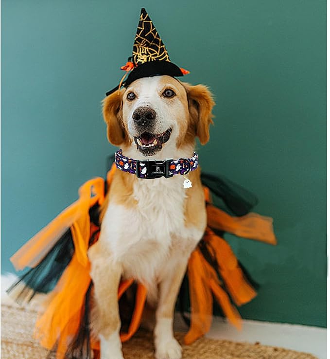 Lionheart glory Dog Collars Fall Halloween Pumpkin Collar Dog Heavy Comfortable Adjustable Dog Collar for Large Dogs, Ghost, Pumpkin