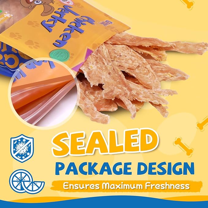- Real Chicken Breast: Made from high-quality, all-natural chicken breast, our chicken jerky treats contain no fillers, additives, or artificial preservatives, ensuring a healthy and nutritious option for your beloved pet.