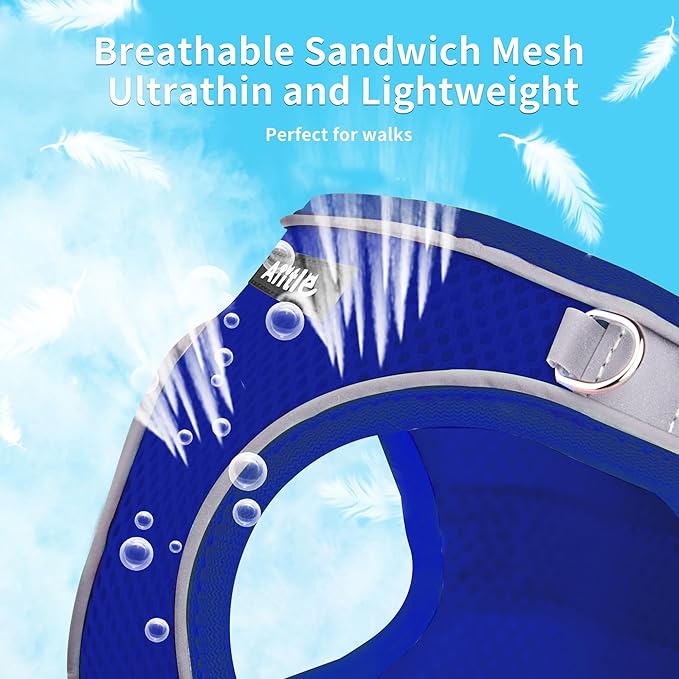- Ultra Breathable: The step-in dog harness is made with super breathable sandwich air mesh, which is ultrathin, cooler, soft and more comfortable. The surface of sandwich mesh fabric is covered with holes, which can keep your dog dry in daily walking. So our small puppy harness is perfect for walks in any season, such as the upcoming spring, give pets an extraordinary wearing experience. Now you can have a happy walking with your pet dog!