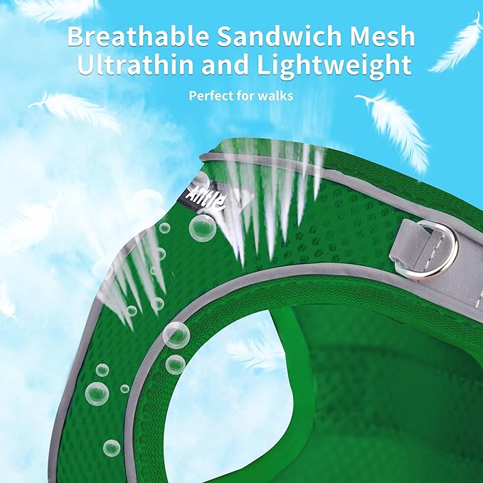 - Ultra Breathable: The step-in dog harness is made with super breathable sandwich air mesh, which is ultrathin, cooler, soft and more comfortable. The surface of sandwich mesh fabric is covered with holes, which can keep your dog dry in daily walking. So our small puppy harness is perfect for walks in any season, such as the upcoming spring, give pets an extraordinary wearing experience. Now you can have a happy walking with your pet dog!