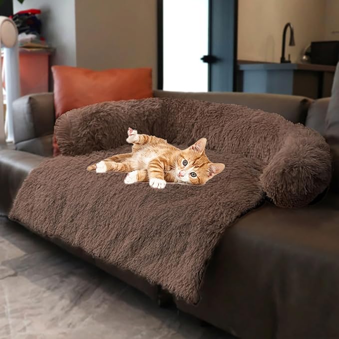Tinaco Luxurious Calming Bed Mats, Washable Removable Couch Cover, Plush Long Fur Mat for Pets, Waterproof Lining, Perfect for Small, Medium and Large Dogs and Cats (Desert Brown, S)