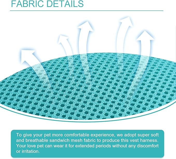 - COMFORTABLE OUTDOOR HARNESS - We use super soft and breathable mesh to make this harness to make your pet feel warm in winter and cool in summer. The harness features 4 adjustable sliding buckles on the sides to ensure a secure fit.