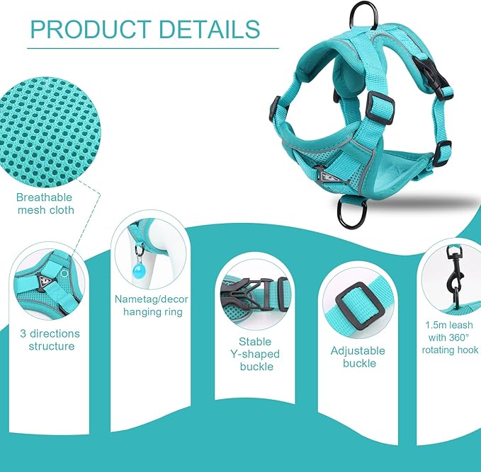 - Harness with Reflective Strips: This harness comes with reflective strips that easily reflect car lights or flashlights, reducing the risk of accidents. We’ve also added a D-ring on the chest for attaching a name tag. If your pet gets lost, friendly individuals can easily contact you using the information on the tag.