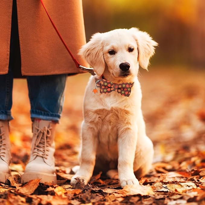 - Premium Quality: Made with durable polyester fabric, be friendly to your pet's skin, These fall dog bowtie collars are soft, durable, fashion and adjustable, make your dog feel relaxed and comfortable when wearing.
