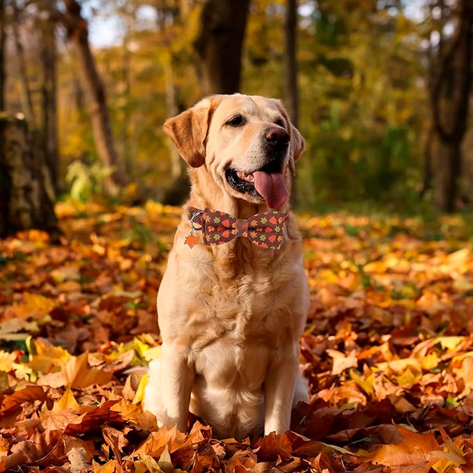 - Premium Quality: Made with durable polyester fabric, be friendly to your pet's skin, These fall dog bowtie collars are soft, durable, fashion and adjustable, make your dog feel relaxed and comfortable when wearing.