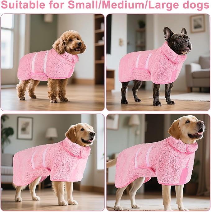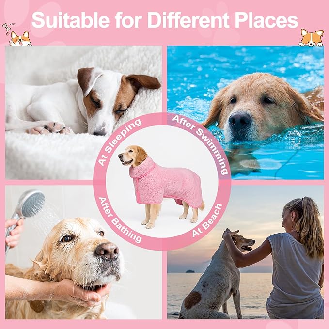 Bienbee Dog Bathrobe, Quick Drying Super Absorbent Dog Robes for After Bath, Warm Keeping Dogs Towel, Dogs Bath Supplies, Pink XL