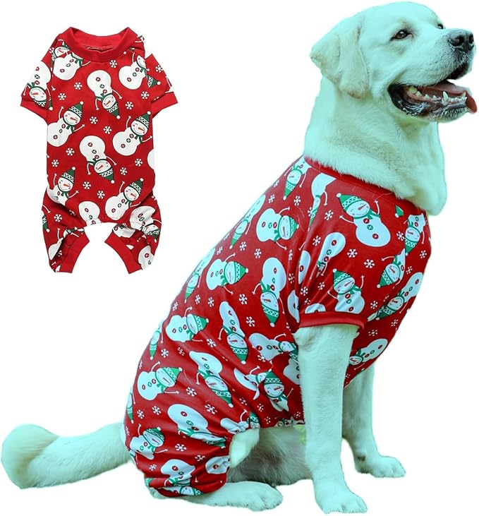 Lanyarco Snowman Christmas Pajama for Dogs, Cotton Pet Dog Christmas Pajamas Jumpshit PJS Onesie for Large Dogs, Back 25" XXLarge Red