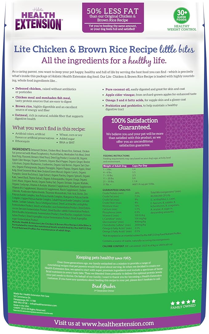 Health Extension Little Bites Lite Chicken & Brown Rice Dry Dog Food (4 lb / 1.8 Kg) - Natural with Probiotics and Superfoods for Overweight Adult Dogs (Pack of 2)