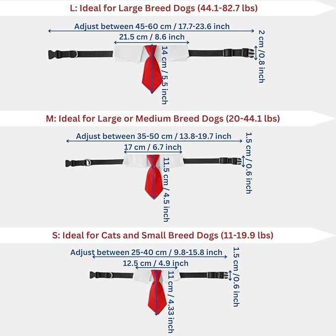 - 【Colors and Sizes】We offer two tie colors and three sizes to fit most pets, check the images to find the perfect fit for your furry companion