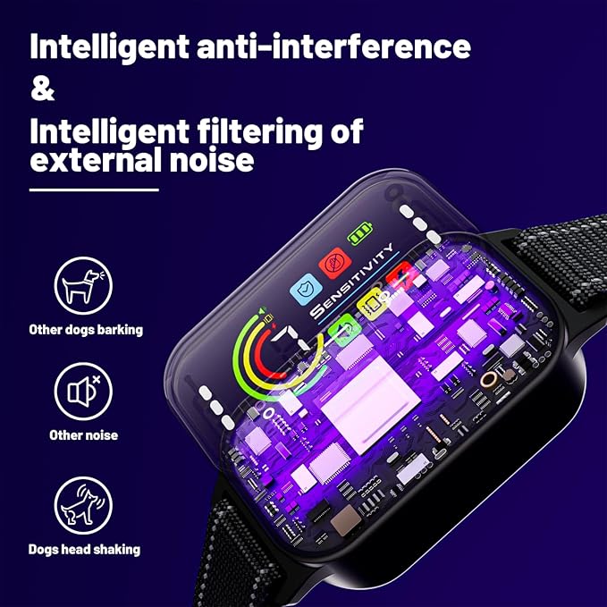- 【Upgraded Technology, No More False Triggering】The ODIFRBI collar features four smart AI safety training modes and smart bark collar for dogs adopts advanced dog bark recognition chip and motion detection technology. It includes a no shock mode with beep, vibration, beep+vibration; .With adjustable sensitivity ranging from 0-7, this feature enables bark collar to effectively correct a dog's bad habits.