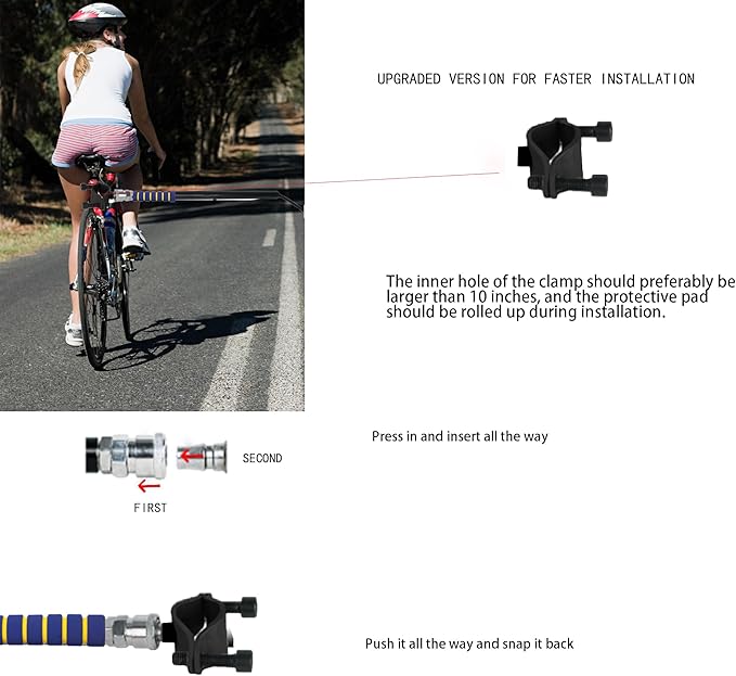 - ☺️[Bicycle Dog Leash Quick Release] This bicycle dog leash attachment is suitable for bikes with seat post 10 inches or more, mounted on the seat post underneath the bike saddle, the special release on the bicycle dog leash allows you to attach and detach it quickly, easily and conveniently.hands free slatmill for dogs dog bike attachment.bike dog leash bike attachment for dogs
