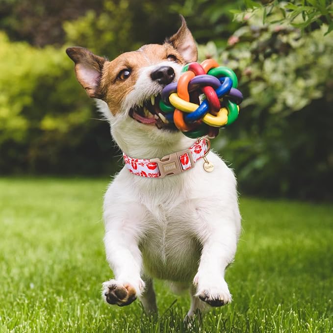 Faleela Dog Collar - Cute & Comfy Cotton Pet Collar, Adjustable Lightweight Design with Quick-Release Buckle, for Small, Medium & Large Dogs - Multiple Styles Available (Valentine, Large)