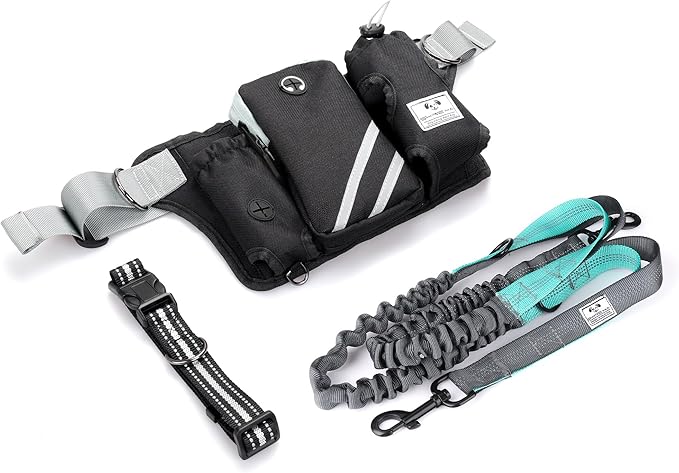 SHINE HAI Retractable Hands Free Dog Leash with Dual Bungees for Dogs, Adjustable Waist Belt Bag, Reflective Stitching Leash for Running Walking Hiking Jogging Biking (for 1 Dog)