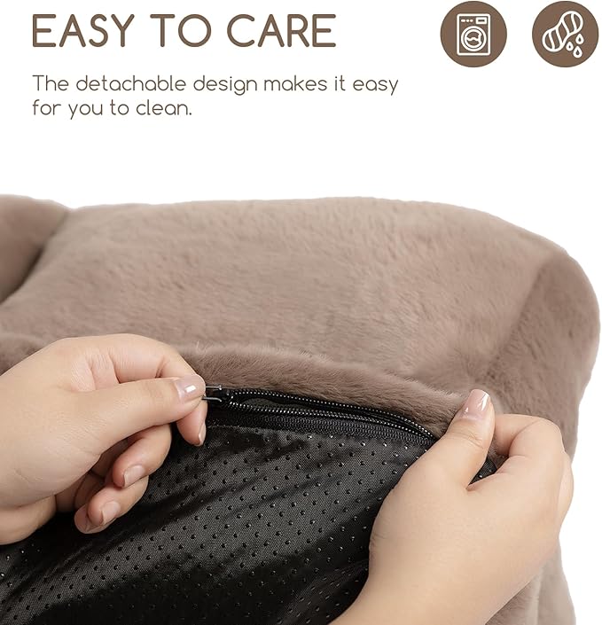 Hollypet Fluffy Plush Pet Sofa Soft Calming Pet Sofa Beds for Medium Small Cats and Dogs, Dark Brown
