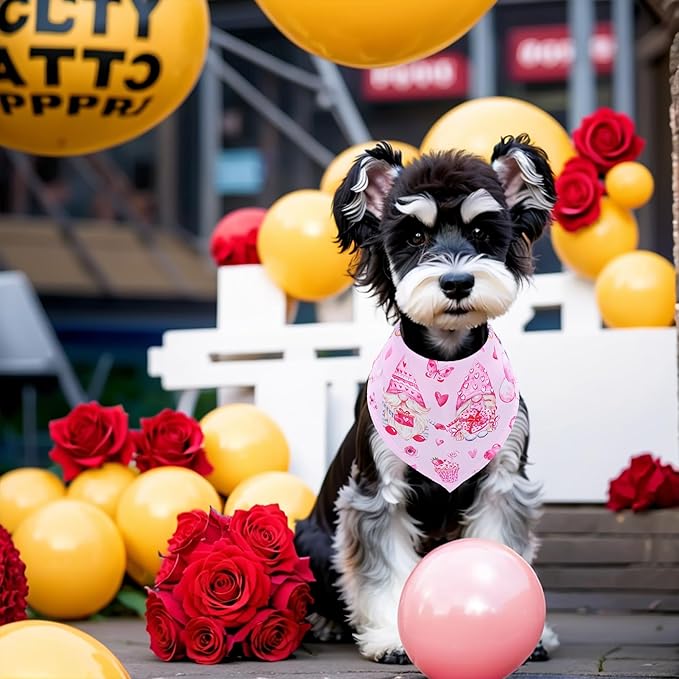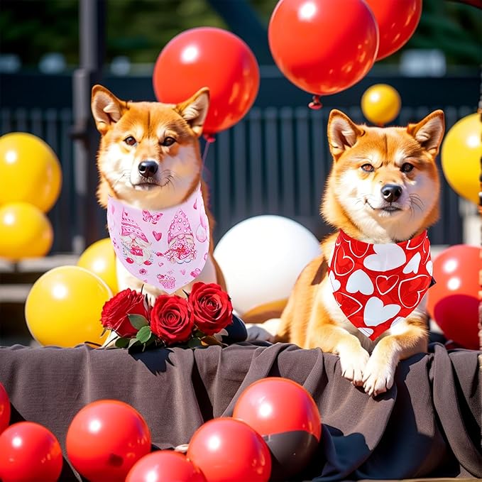 - Valentine's Day design elements:These dog bandanas are printed hearts lips roses gnome love elements,which are suit for vibrant dogs, cats and other cute furry pets