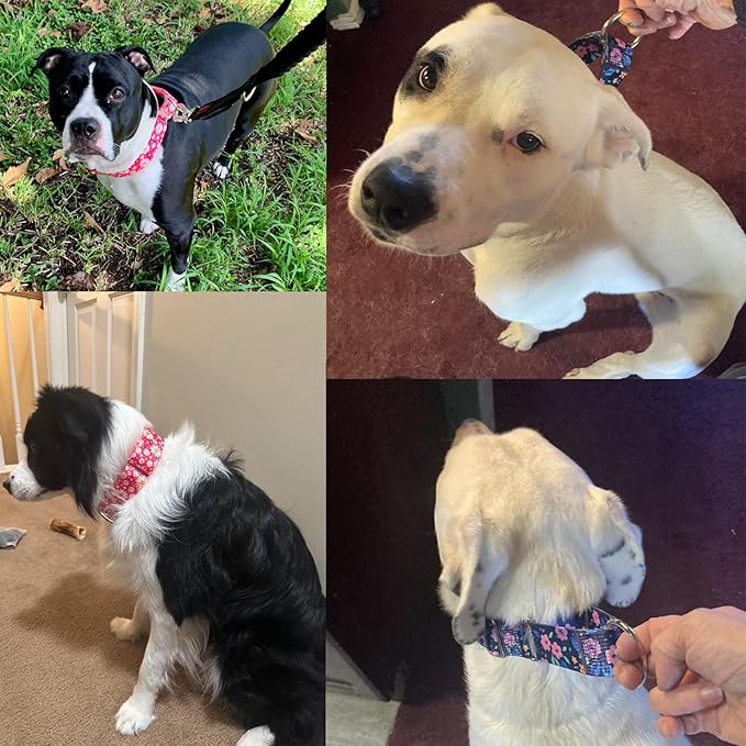 Martingale Dog Collar for Large/X-Large Dogs - Heavy Duty 1.5" Military Grade Nylon Collar with Red Daisy Floral Design, No-Slip Adjustable Training Collar Durable & Stylish (M)