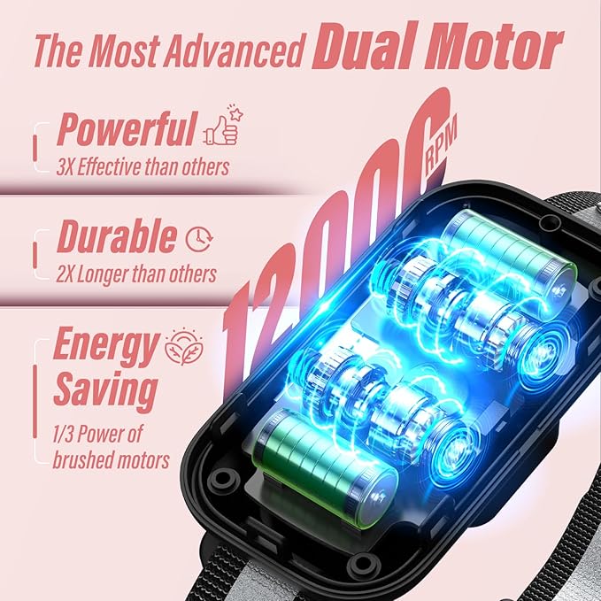 - 【ADVANCED 12000R MOTOR, POWERFUL, DURABLE & ENERGY SAVING】 Kollgux bark collar for large dog is equipped with two 12000R super motors. The volume is only 70% of other models, but the speed is twice as fast as others. The next generation output adopts complementary PWM drive, which has fast speed, low heat and low power consumption, making it more powerful, more durable and more energy saving. Kollgux anti barking device for dogs helps your dog from ruff to well-behaved