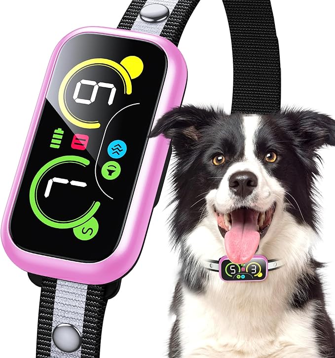 Bark Collar, Dog Bark Collar for Large Medium Small Dogs, Smart Barking Collar, Effective Anti Bark Collars for Dogs, Automatic Bark Collar Adjustable Beep Vibration Modes & 7 Sensitivity Pink