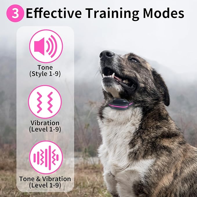 - 3 Safe No Shock Training Modes : Our no shock vibrating dog collar offers 3 training modes with adjustable tone (1-9 styles), vibration (1-9 levels), and tone & vibration (1-9 levels/styles), catering to various training needs