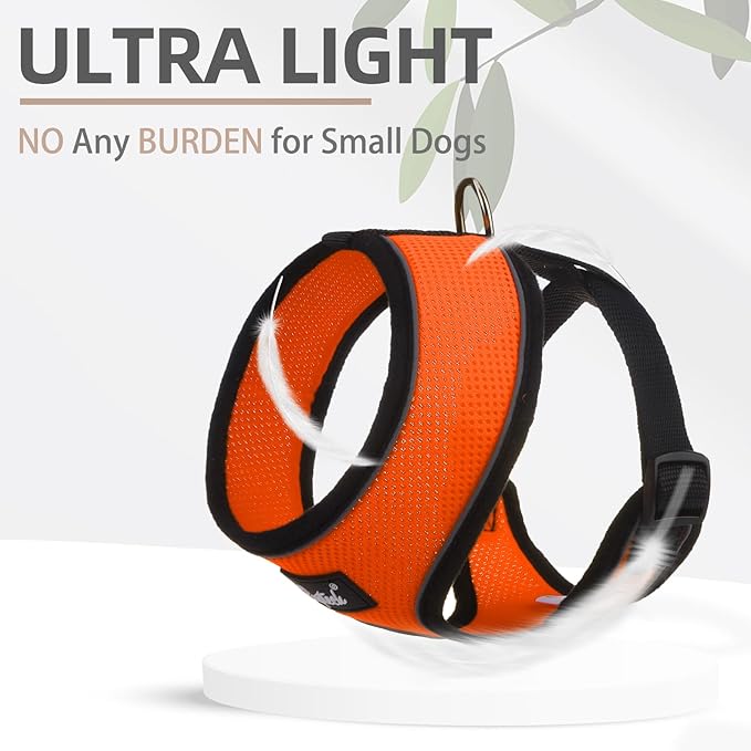 - QUALITY MATERIALS: Made of premium polyester materials, it's adopted with an air-mesh design, so it's very lightweight and breathable. The soft edge keeps the dog always comfortable, it's no pull and no choke. And sturdy webbings make sure the harness can be used for a long period. The metal D-ring will connect to the matching leash to keep the control by you