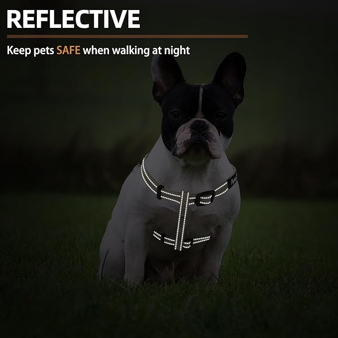 - [Durable & Comfortable Material] - High-quality nylon fabric with high-density webbing to add durability. The webbings have been widened, and the surface is very smooth, so the harness's comfort will be better. Your dog will enjoy the daily walk in this comfortable dog harness!
