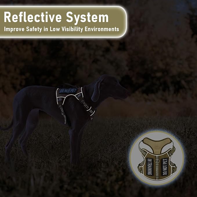 Adjustable No-Pull Tactical Dog Vest Harness for Big Dog Breeds, Siberian Husky Labrador Golden Retriever, Reflective Breathable Oxford Material, Front Leash Clip Control, Army Green, L