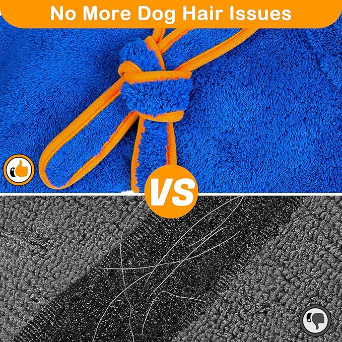 - Adjustable Dog Robe: The dog towels for drying dogs features built-in adjustable straps that allow for a customizable fit around dog's waist; This design not only ensures a perfect fit but also effectively eliminates the issue of pet hair sticking to hook-and-loop fasteners
