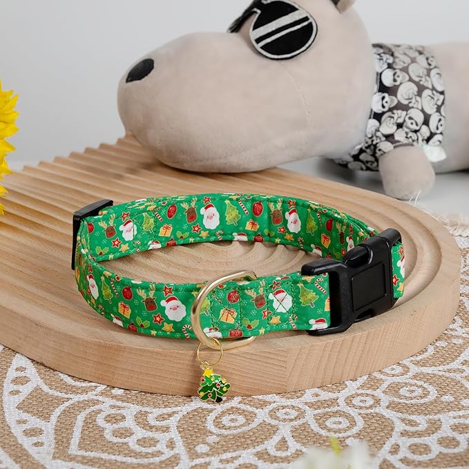 - Green Christmas Dog Collar: Integrate rich Christmas elements to create a strong Christmas holiday atmosphere! Soft fabric, personalized design of bright colors, cute pattern elements exquisite pendant, make your boy girl dogs more cute charm comfortable.