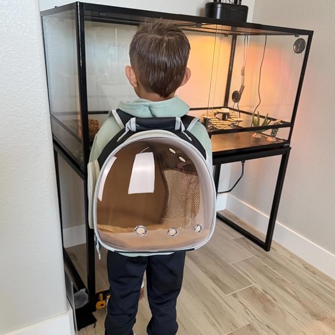 - Bearded dragon backpack carrier with leash and harness set has a big bubble Window. The front hard clear bubble window is better to protect reptile from crushing and attacking if accidents, it also provides a nice front view so they could check surroundings without anxiety.