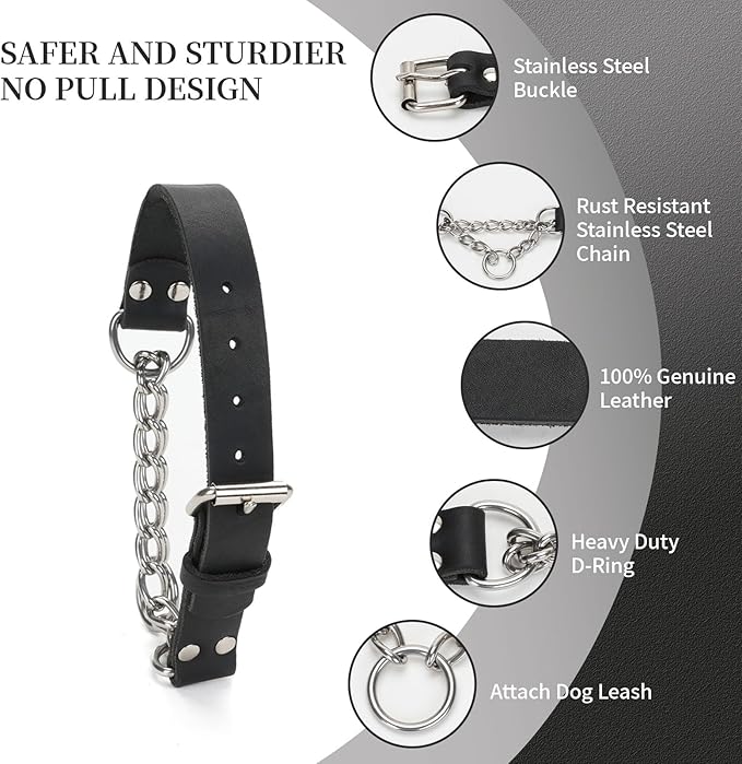 - 【Premium Quality Leather】Made from 100% genuine leather and features a stainless-steel chain, our dog collars provides unmatched durability and comfort.